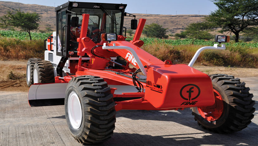 Fine Equipments India Pvt Ltd with extensive customer feedback has introduced the motor grader FMG170 to meet the needs and demands of the growing infrastructure industry in the nation. Fine Equipments is regarded as a market leader in many of their existing range of products. The faith and trust of the industry on us gives us the confidence to add a whole new product to our offering. The FINE FMG170 is designed to combine the attributes of productivity, operator friendliness, reliability and ease of service in a quality package. The FMG170 is powered with Cummins engine which is ideal for this application as it produces the required torque at low engine speeds delivering responsiveness and fuel efficiency. These engines run cleanly without extra service required for additional equipment or after treatment of exhaust gases. The transmission has been selected to optimize the engine performance and enhance overall fuel efficiency by matching engine power to the application. Wide stance blade lift cylinders provide the most stable grading platform in the industry. The hydraulic motor coupled to the drive circle turn system results in the precise instantly responsive earthmoving tool. It also provides high strength to hold or turn the moldboard smoothly while negotiating maximum loads. This helps in more accuracy and performance resulting into single pass finishes, which make FMG 170 contribute significantly to productivity and cost saving. The robotically welded frame helps to ensure structural rigidity while the rear frame design protects the power train from load and stress created by side and rear attachments, such as rippers and scarifiers. The structural design of the grader helps the grader to achieve the maximum blade down force and drawbar pull rates. To match the grader performance with tractive conditions the operator can lock or unlock the differential with simple operator friendly mechanism. The powerful six-wheel drive combines with an efficient four-wheel tandem drive and exclusive front wheel creep mode which is ideal for precise fine grading application. The operator environment of the FMG170 motor grader meets the demand for safety, comfort and productivity. ROPS and FOPS certified cab ensures operator safety. The cabs styling features expansive glass areas providing exceptional ground visibility from the forward, rear and downward views. The operator is aided by optimally placed interior and exterior mirrors which give a commanding view around the machine.